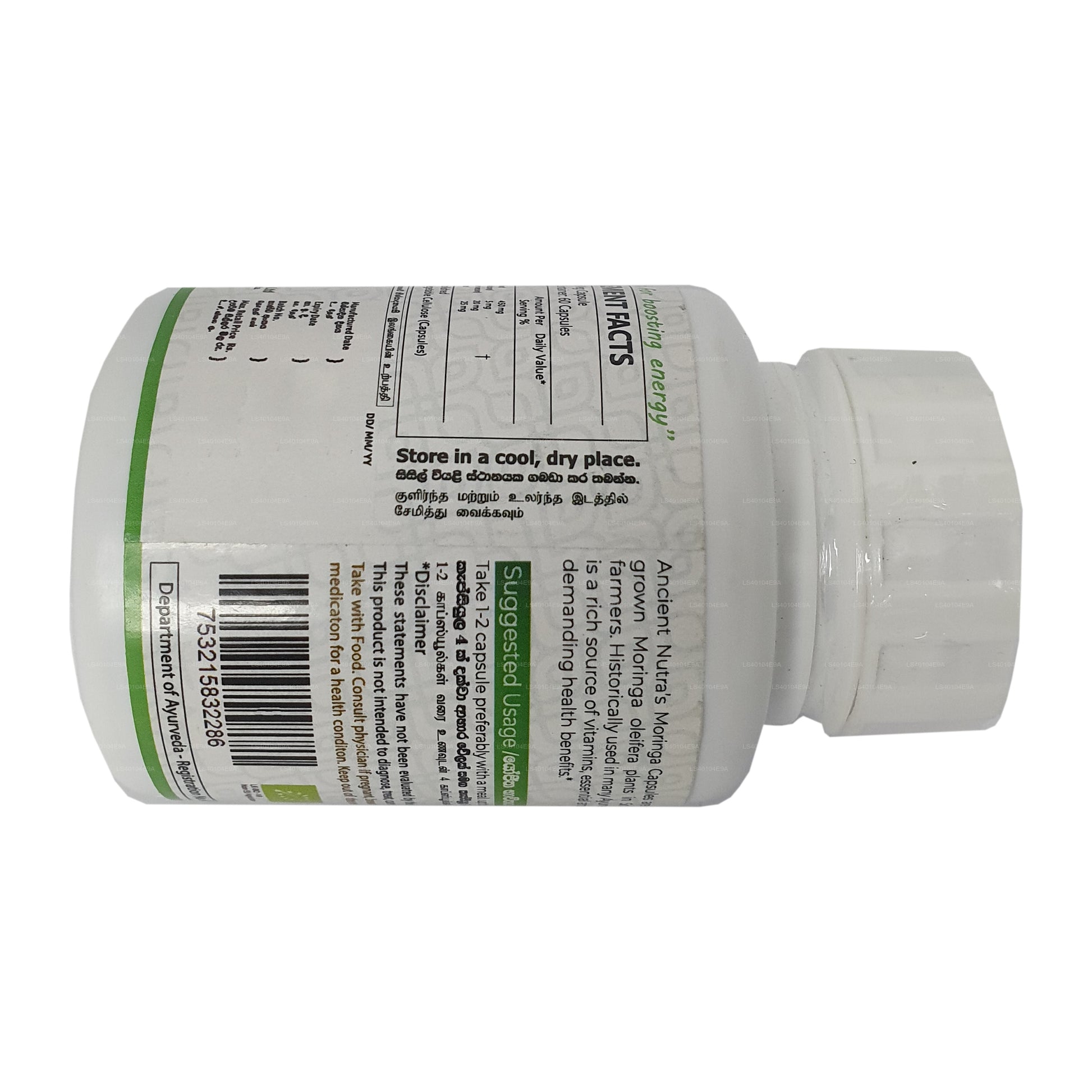 (SKU: LS40104E9A) 自然の活力を凝縮した 60 カプセルの古代ニュートラ モリンガの力を発見してください。古代の知恵が詰まった各カプセルには、総合的な健康効果で知られる栄養豊富なモリンガの強力な供給源が含まれています。強化されたエネルギー、免疫サポート、そして若返りへの旅を解き放ちましょう。古代ニュートラ モリンガの 60 カプセルで健康習慣を高めましょう。今日の健康のための過去からの時代を超越した贈り物です。