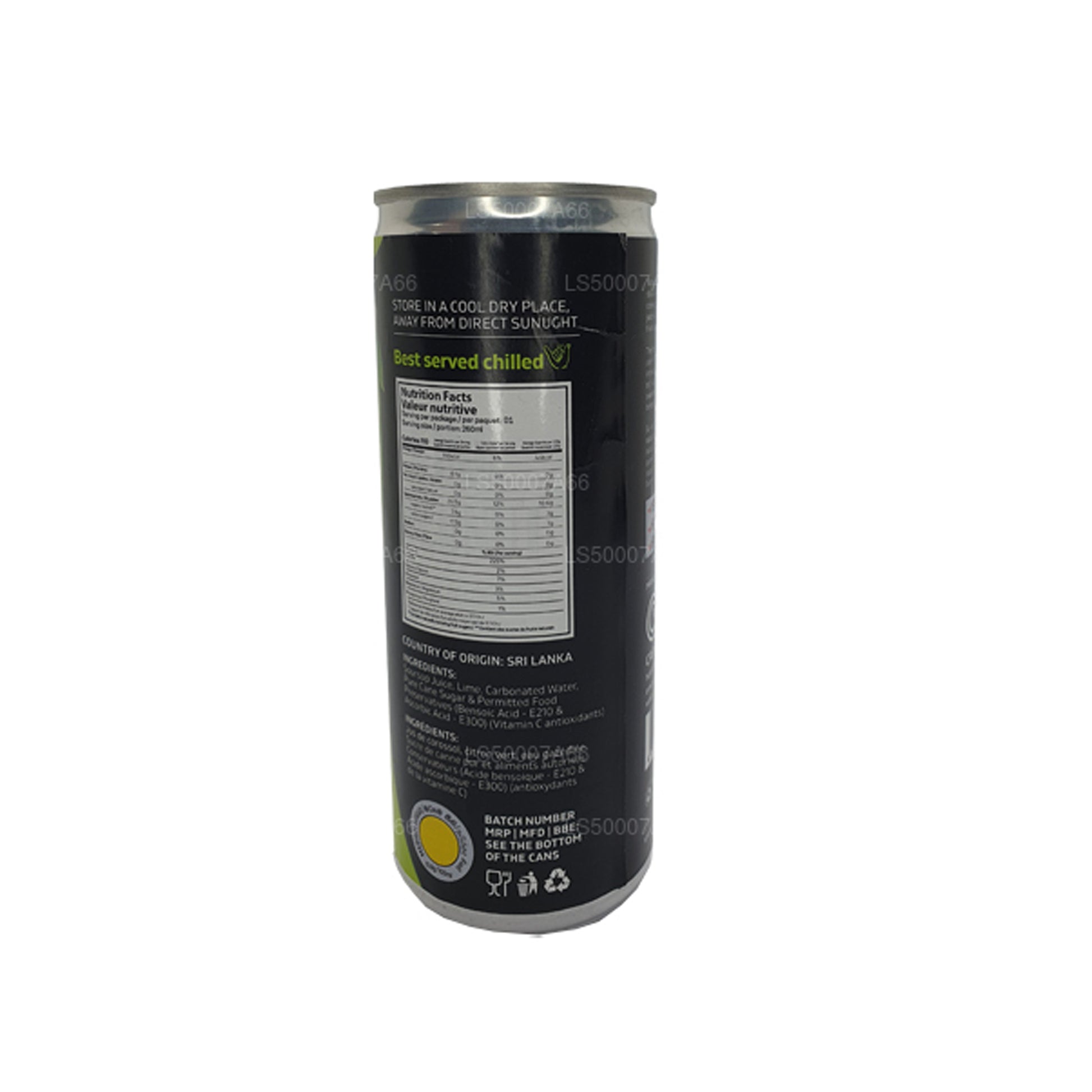 原材料:サワーサップジュース、ライム、炭酸水、純粋な砂糖、および許可された食品保存料 (安息香酸-E210 およびアスコルビン酸-E300)。 (ビタミンC抗酸化物質)。