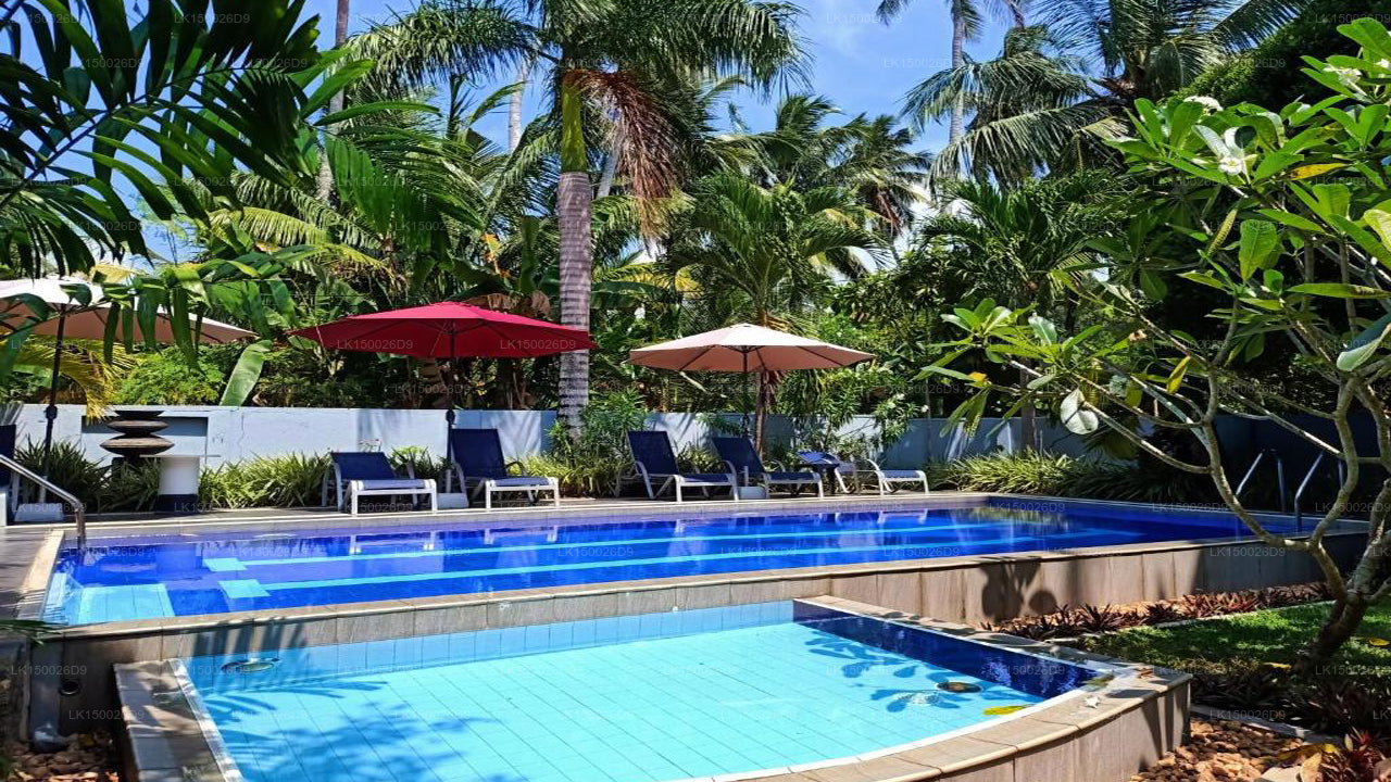 (SKU: LK150026D9) Hikka Villa in Hikkaduwa is a captivating haven, just 500 meters from Hikkaduwa Beach. This 5-bedroom villa, spanning 500 m², offers a private pool, garden, and BBQ facilities. Modern amenities include a fully equipped kitchen, free WiFi, and a terrace with pool views. With sustainable practices and a commitment to eco-friendly travel, Hikka Villa provides a tranquil retreat with easy access to Hikkaduwa's attractions.