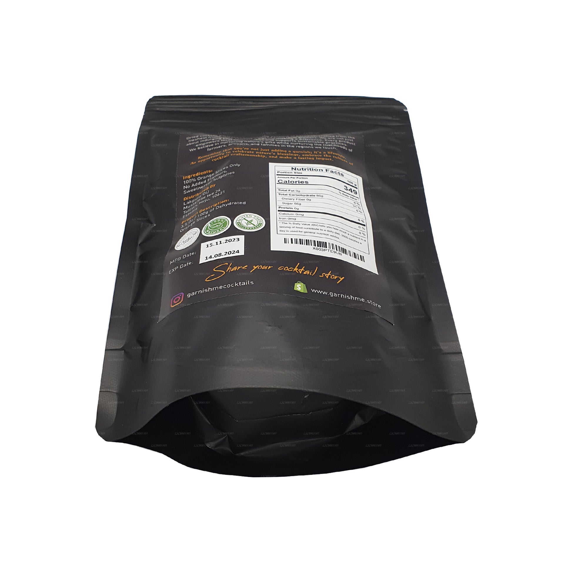 sophisticated touch to elevate your mixology experience. Carefully crafted from premium oranges and dehydrated to perfection, these vibrant slices offer a burst of citrusy flavor and a visually appealing aesthetic to your cocktails. Each 100g pack is a harmonious blend of convenience and freshness, ensuring that the essence of sun-kissed oranges is readily available for your mixological creations. Whether adorning your favorite cocktails, mocktails, or even desserts, Me Garnish Dehydrated Orange Slices add a zesty twist that tantalizes the senses. Unleash your creativity behind the bar and let the versatility of these cocktail garnishes transform your libations into masterpieces. Embrace the Me Garnish experience – where sophistication meets simplicity in every slice. Cheers to flavor, style, and the art of cocktail perfection.