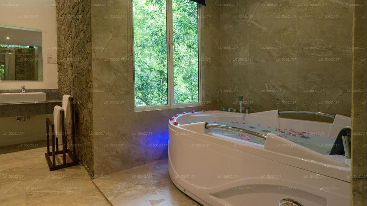 (SKU: LK1500DA97)Palmstone Retreat offers exclusive 5-star luxury with upscale accommodations, fine dining, and privacy. Set amidst lush forests overlooking a scenic stream and waterfall, it's a tranquil escape just 2.5km from Kitulgala, perfectly balancing seclusion and accessibility between Colombo and Nuwara Eliya. Ideal for business or leisure travelers seeking unparalleled service and relaxation.