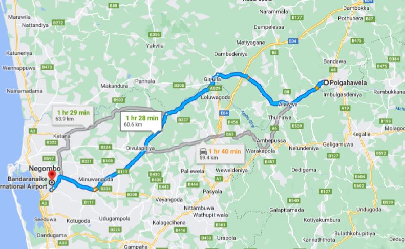 - Pick up from Polgahawela and drop-off at ANY address within the city limits of Colombo Airport (CMB).