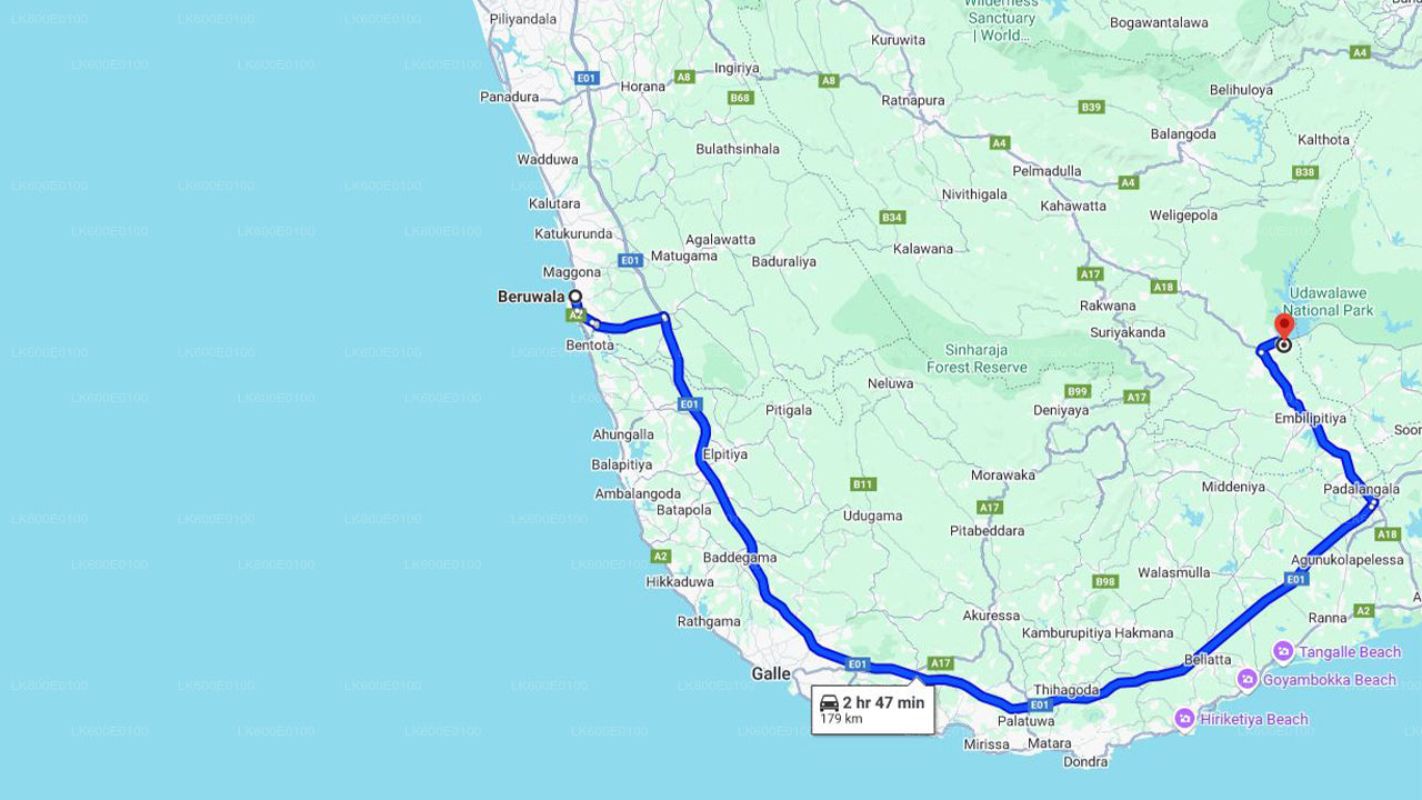 Mattala Airport (HRI) to Beruwala City Private Transfer