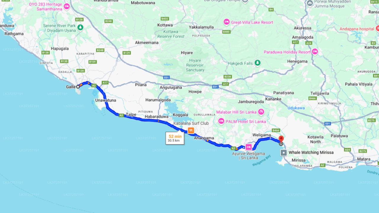 ゴール市からコロンボ市へのプライベート送迎